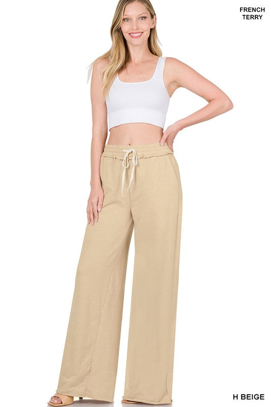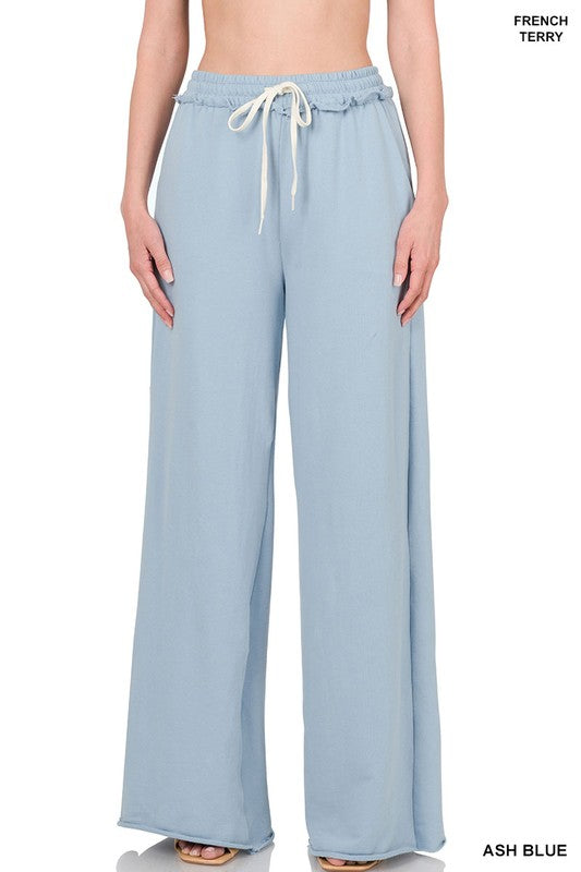 French Terry Drawstring Waist Raw Edge Hem Pants