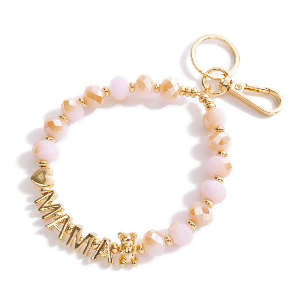 Mama Glass Beaded Bracelet Keychain Featuring Heart and Candy Bear Accents