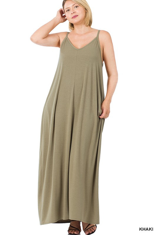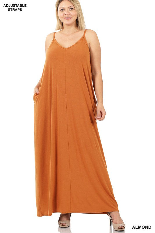 PLUS V NECK CAMI MAXI DRESS WITH SIDE POCKETS