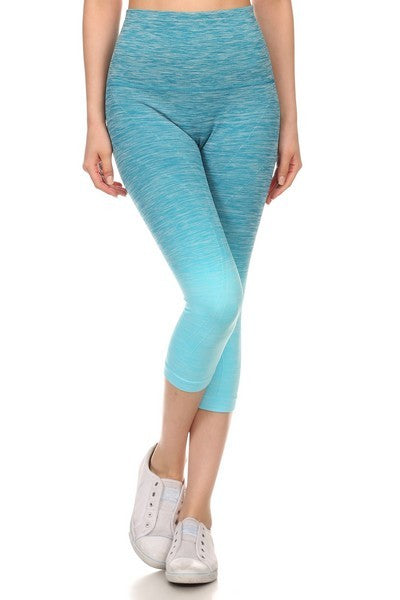 Yelete Dip Dye Ombre Athletic Capri Leggings