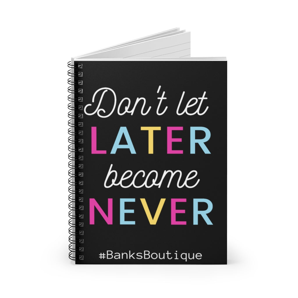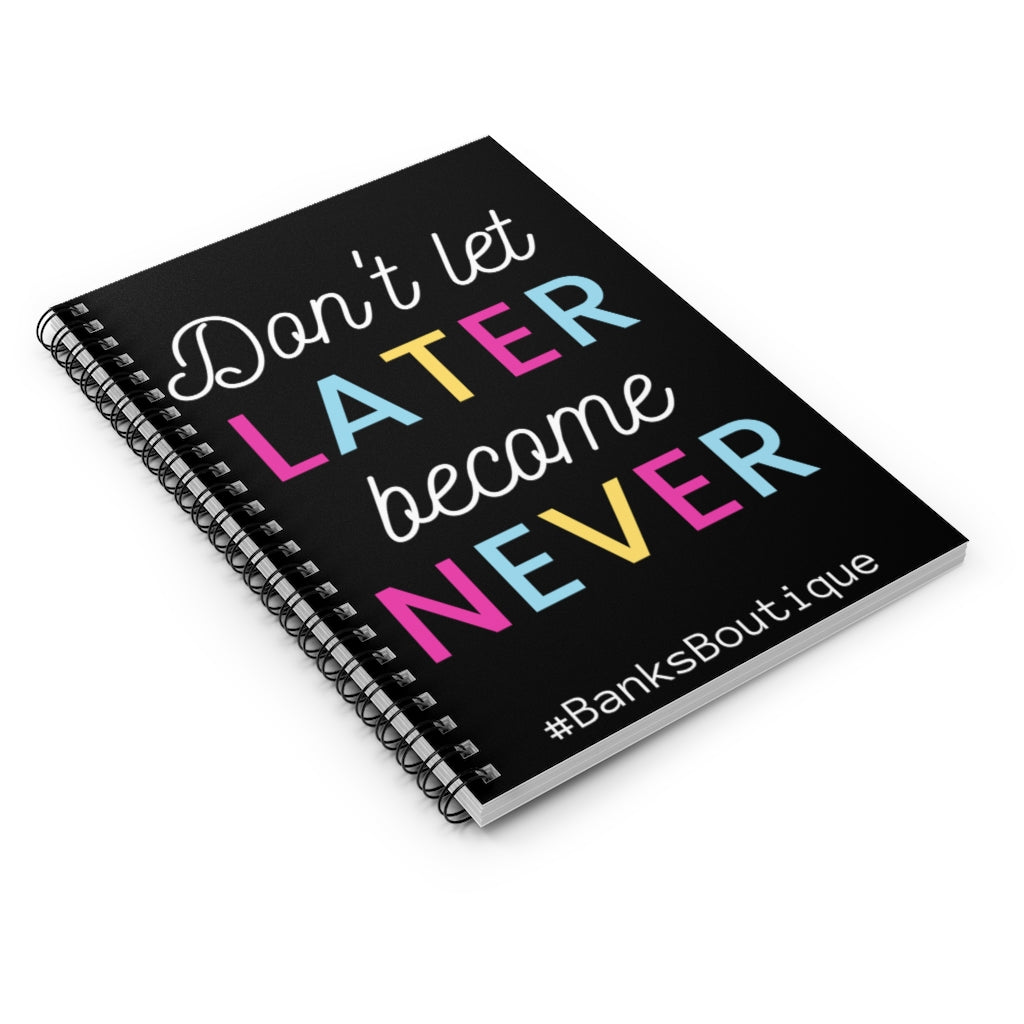 Don't Let Never Become Later- Spiral Notebook - Ruled Line