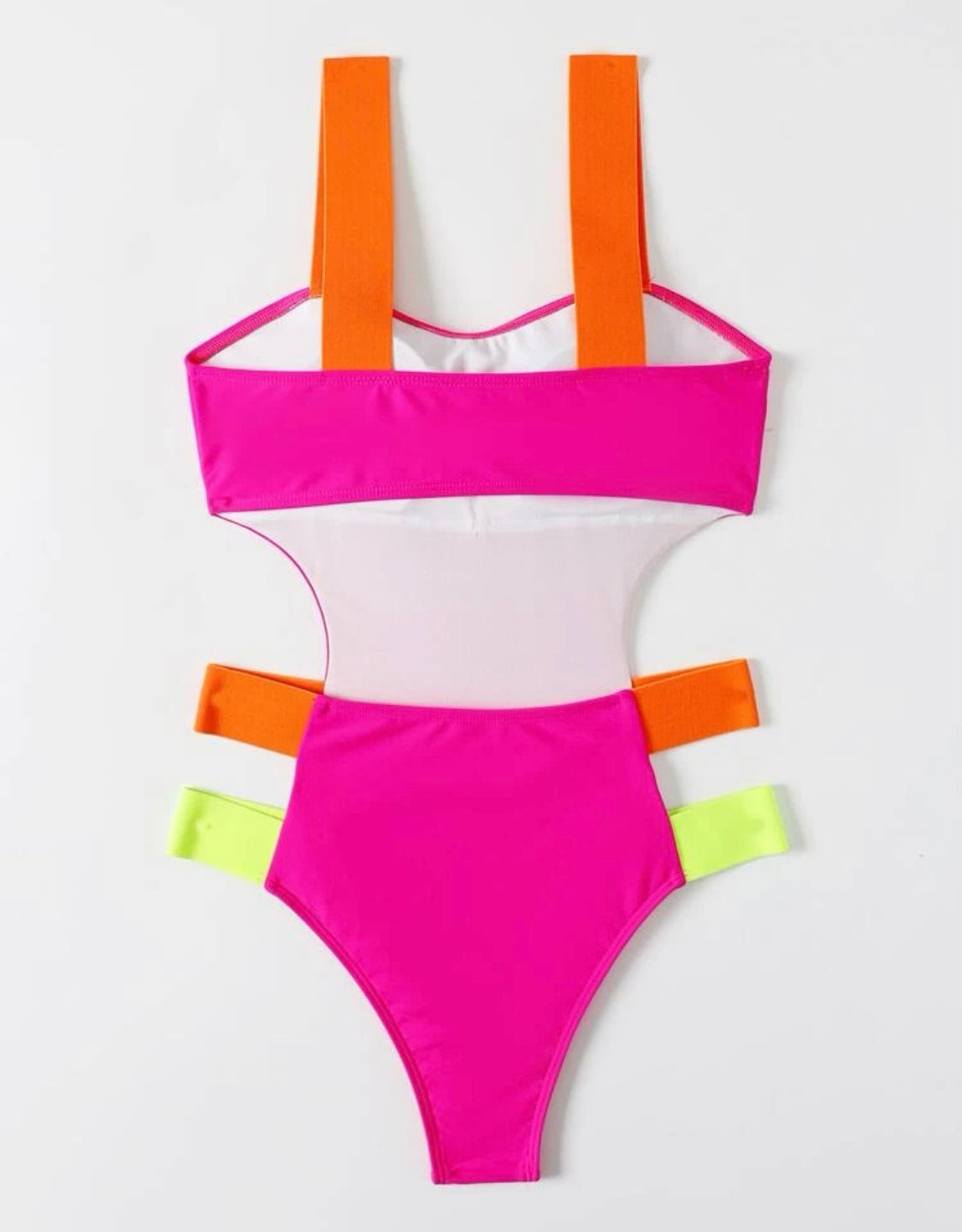 Waist is higher cut, top is wireless with removable padding, high stretch, nylon material-80% Polyamide, 20% Elastane.