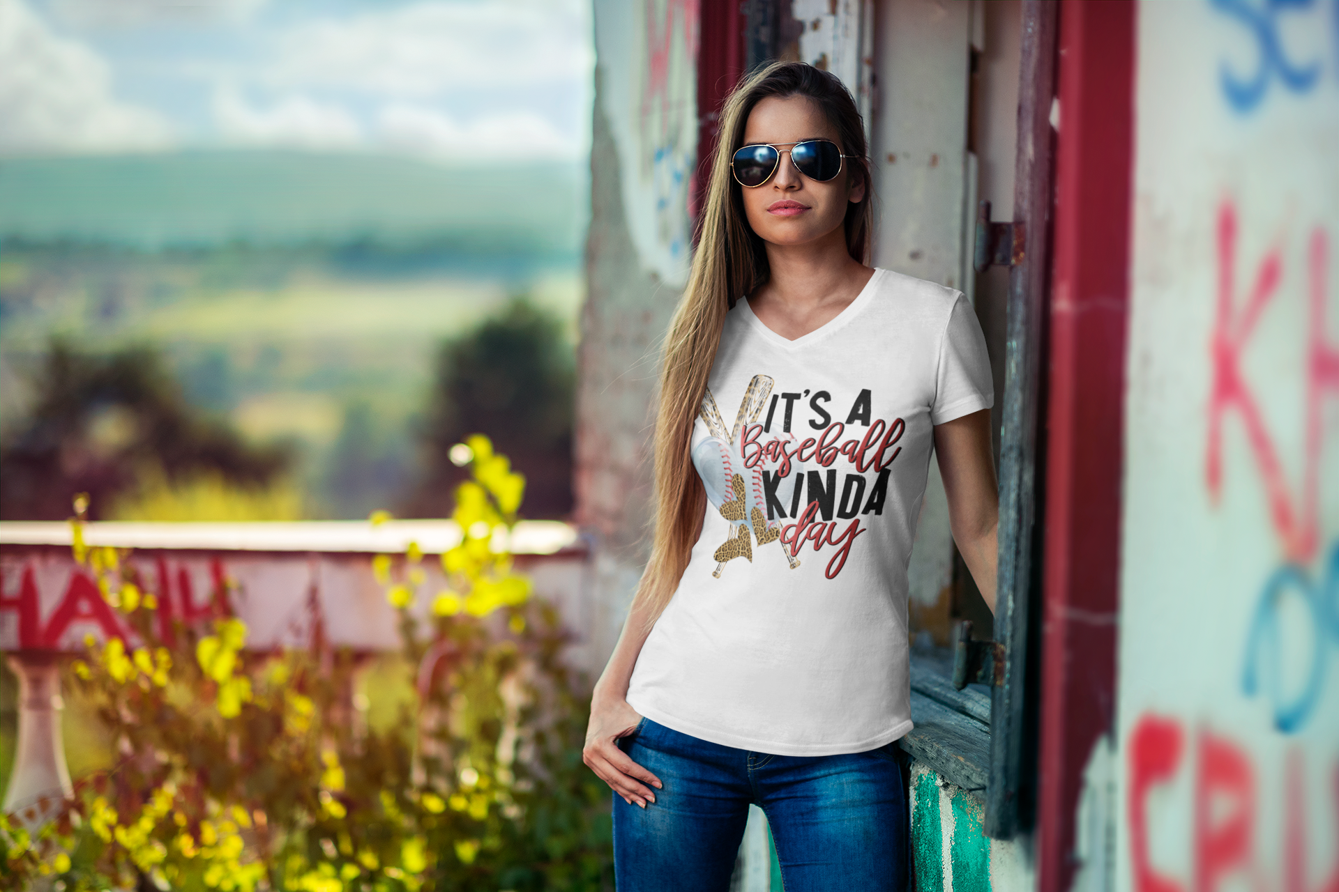 Its a Baseball Kinda Day-Unisex Jersey Short Sleeve V-Neck Tee