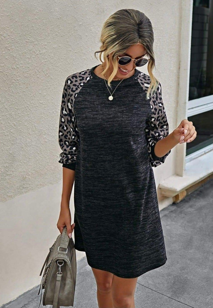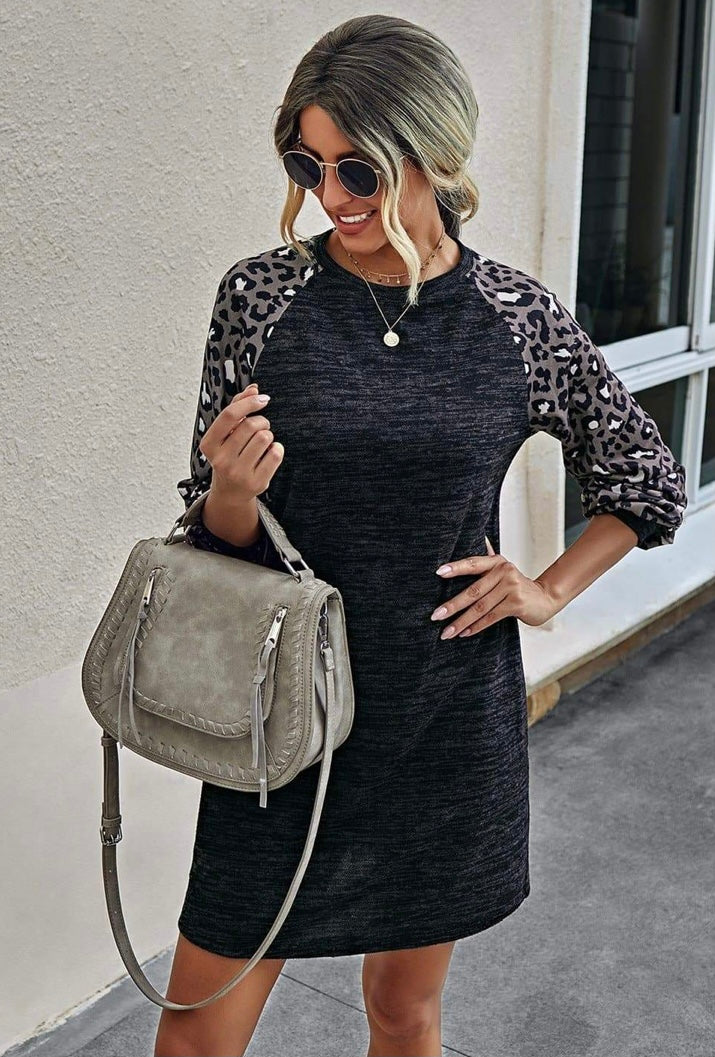 Spring and leopard print are a match made to be! This spring tunic dress is perfect to dress up or down depending on your day. Detailed with cute animal print along the sleeves. Light, airy, and soft making it ideal for the spring and even summer. Easily pair this dress with your favorite knee-high boots in spring and transition into summer with your favorite leather sandals.