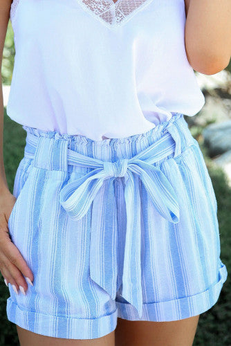 These Striped print shorts are the casual yet fashionable item for every day wear. The Rolled hem design makes them more stylish. The High waisted shorts show off your lovely legs. The Bow knot design makes the shorts easy to take on and off.