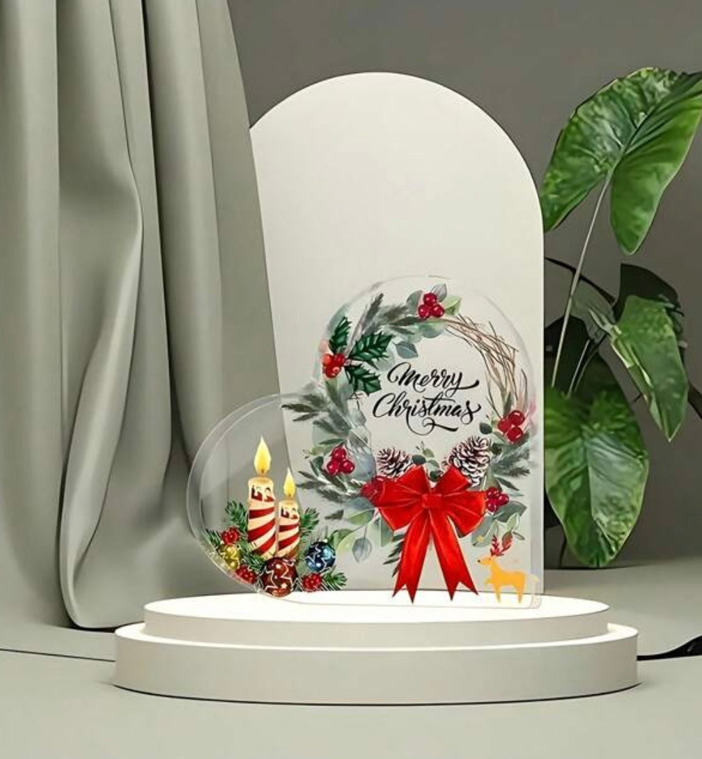 Merry Christmas Acrylic Heart Shaped Decor