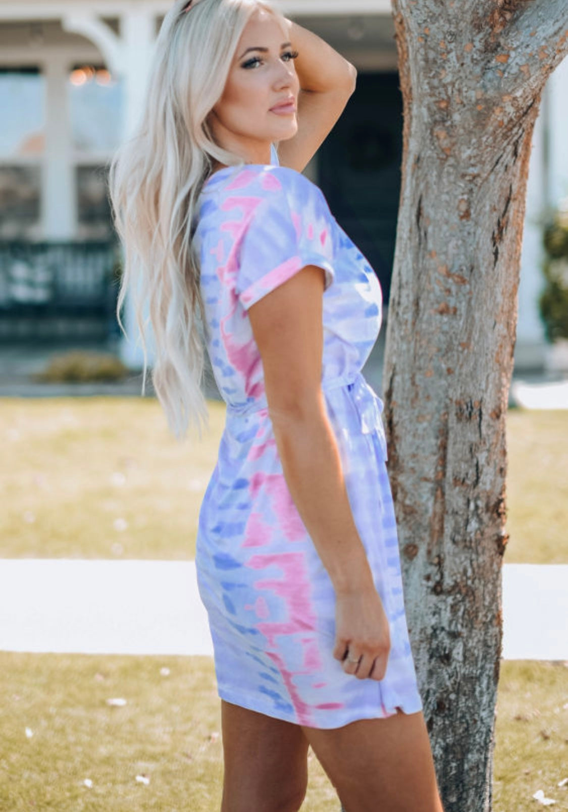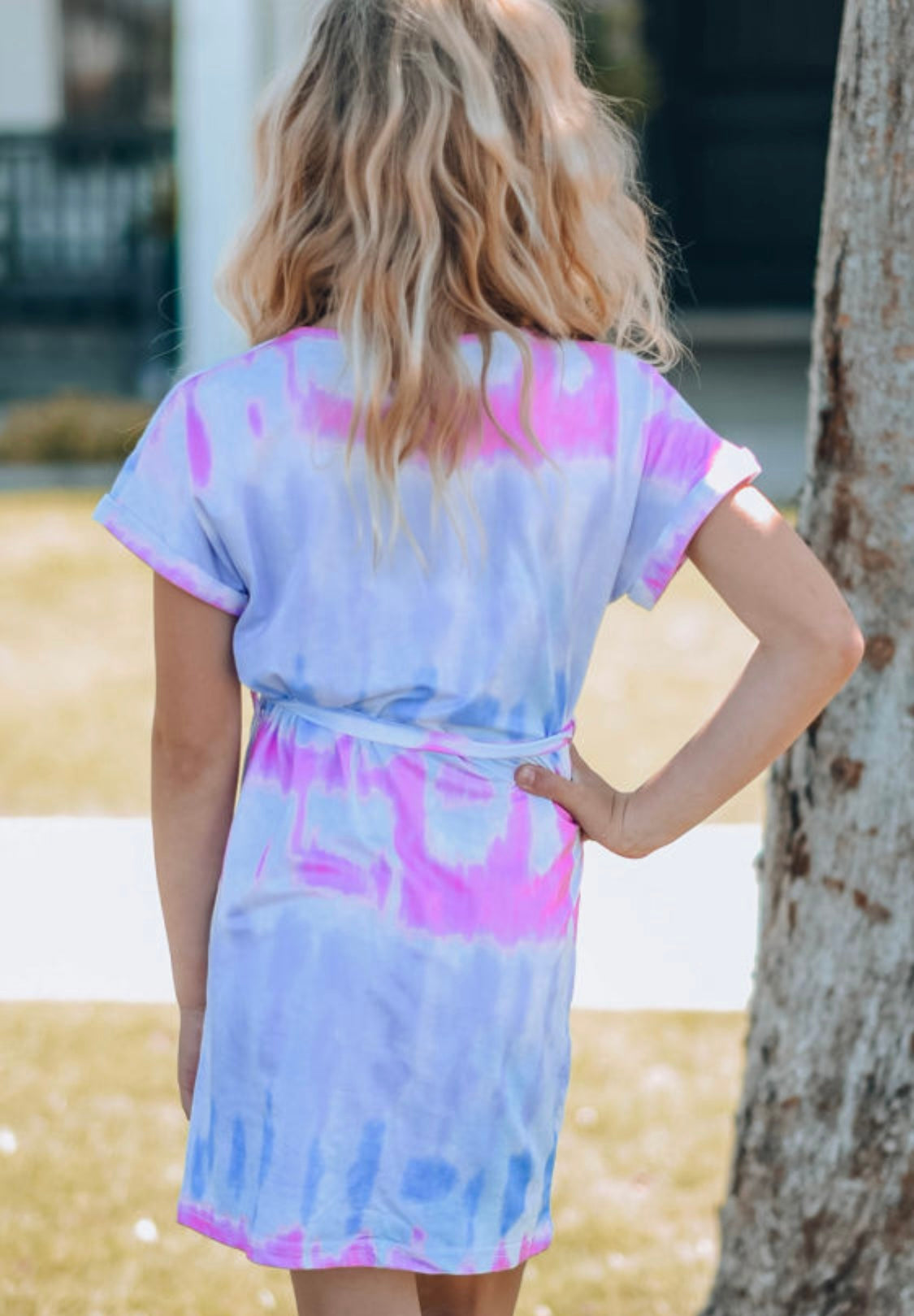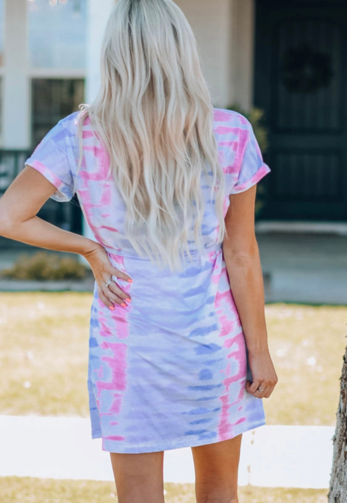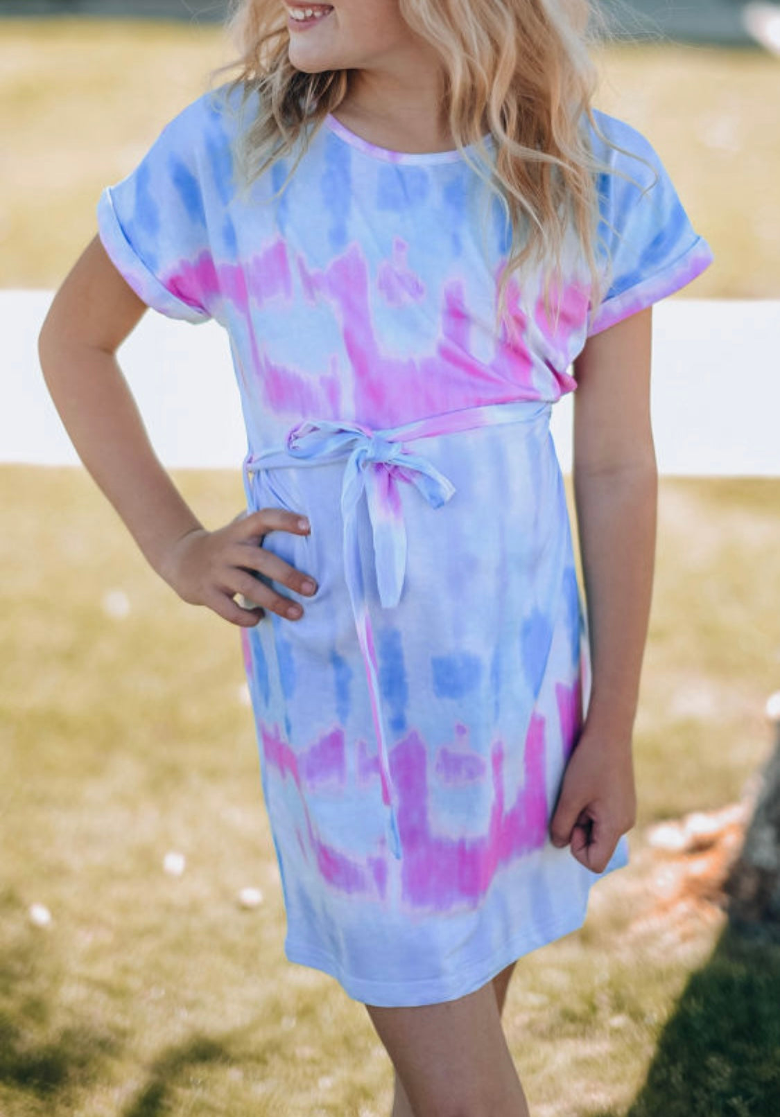 Highlight your summer beach style with this tie-dyed print mini dress & be especially cute matching your mini me.