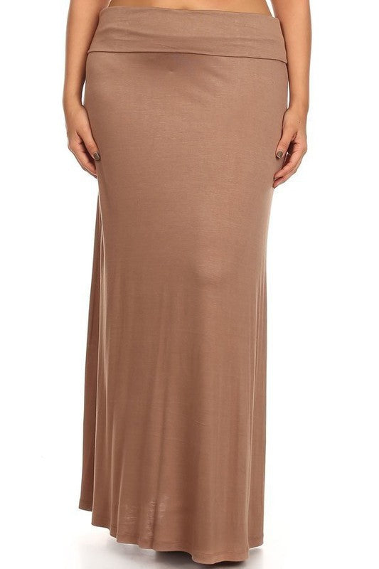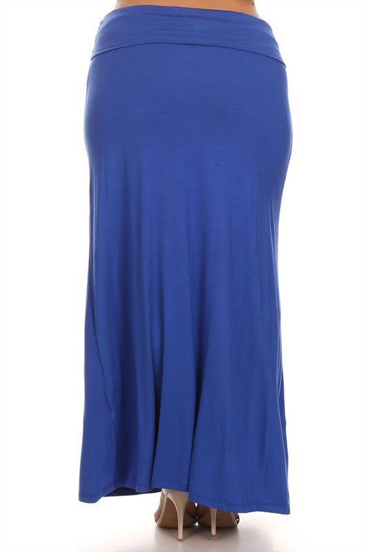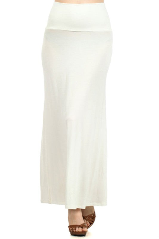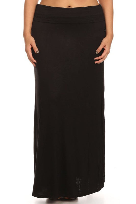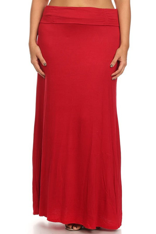Solid, high waisted, a-line maxi skirt in a loose fit with a fold-able waistband. Length: Approx 42.5 inches from waist to hem (including banded waist 5.5 inches) Waist: 35 in Model is wearing a size XL -Variety of colors & style options -Continuously manufactured throughout the year.