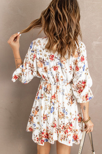 •This Floral print mini dress is very fashionable and chic for daily wear & gives off a cute boho vibe. The V neck and bishop sleeve make the dress more stylish. Flounce hemline is very elegant and sweet for women to wear & the High waist mini dress outlines wearer’s charming body shape.