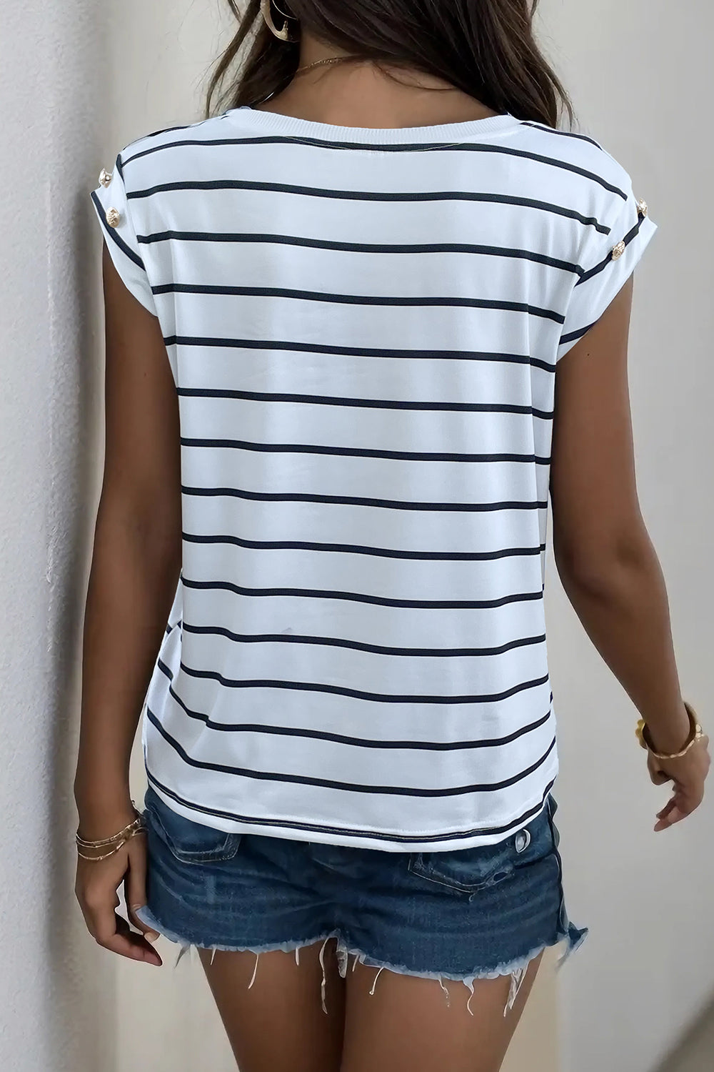 Decorative Button Round Neck T-Shirt