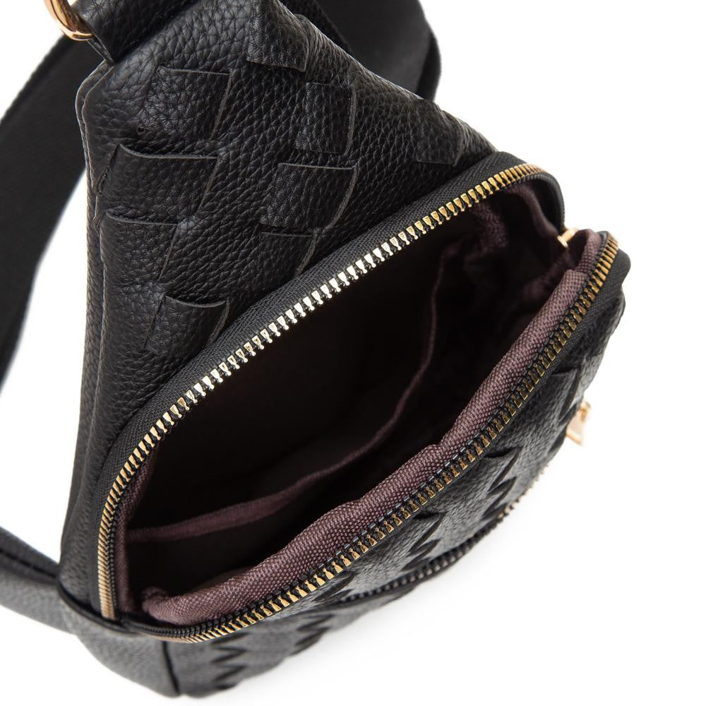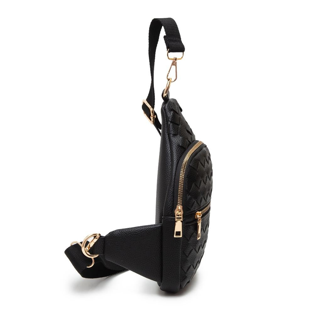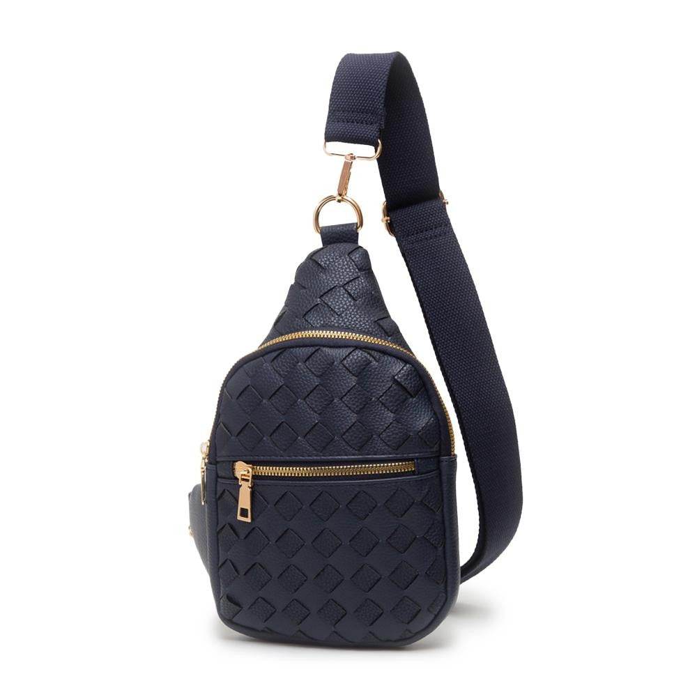 Vegan Leather Basket Weave Sling Bag With Adjustable Nylon Strap